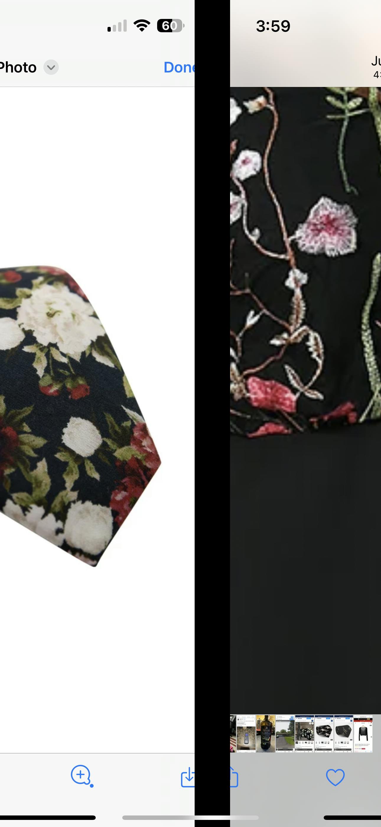 Crimson Rose Skinny Tie. Black background with white and burgundy flowers with sage green leaves and stems.